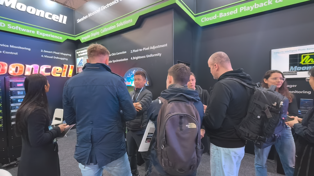 现场观众亲手操作,体验智能监控、像素级调试与多模块协同控制。摩西尔AutoLED调试软件通过可视化交互,轻松实现智能配屏、任意造型搭建、模组标记与网络检测,让复杂连屏变得直观简单,真正实现一站式高效管理。